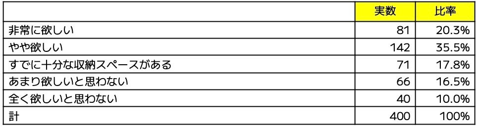 ・自宅のリビングに大型の収納スペースが欲しい=55.8%