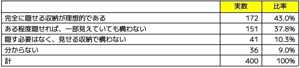 完全に隠せる収納が理想的である(43.0%)