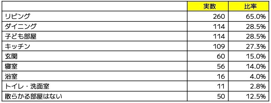 〜物が散らかる場所&散らかって欲しく無い場所の両方ともリビングがトップ〜