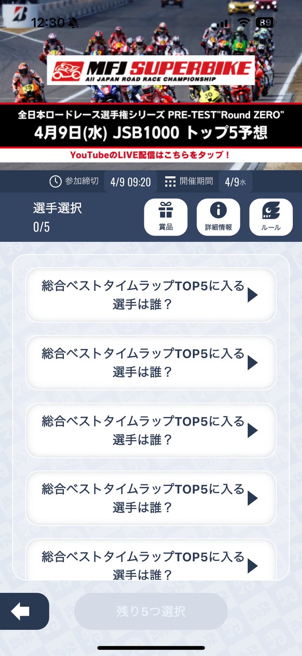 4月9日(水)|Round ZERO 総合ベストタイムラップTOP5予想はこちら