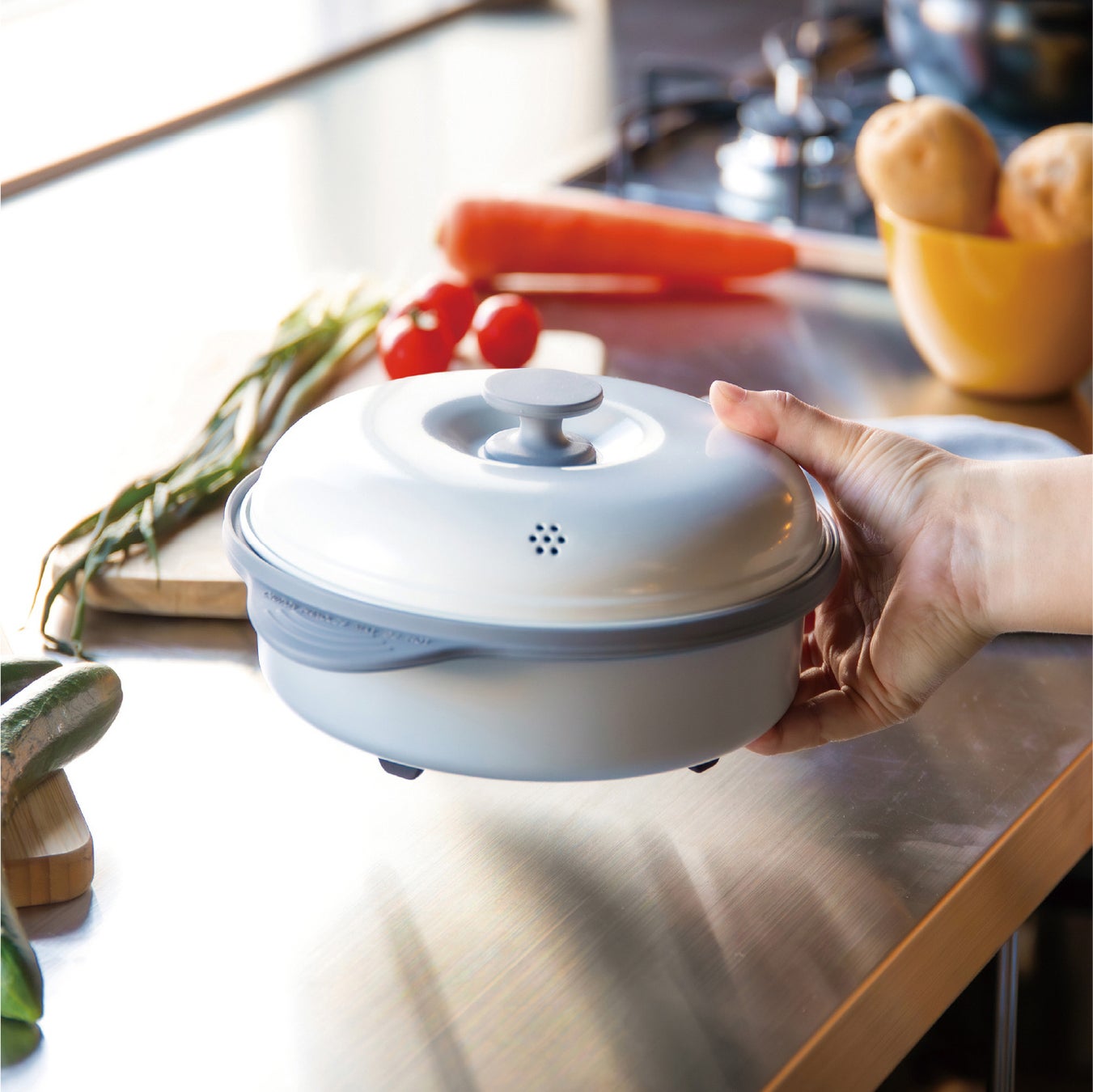 【新商品】電子レンジで蒸し料理・鍋料理が簡単に作れる!「COPAN レンジグリル深型 蒸し皿付き」が新登場。