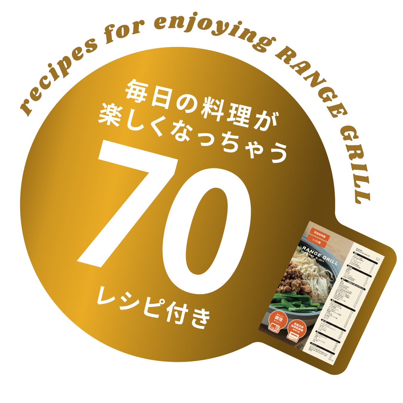 レンジグリルを最大限に楽しめる「70レシピ付き」なので、ご飯の支度に困ったときもレシピ本を見ながら簡単に調理が可能です。