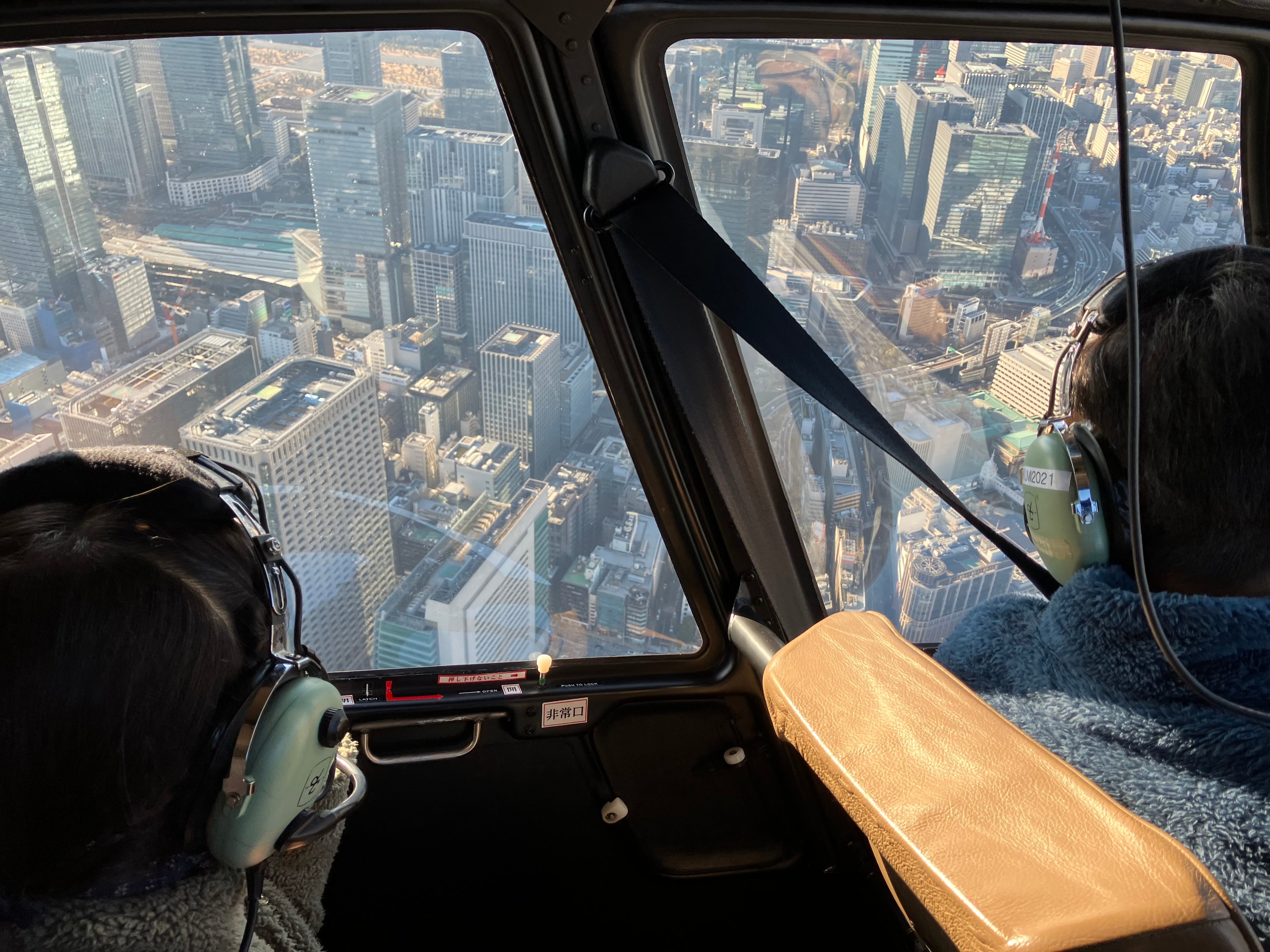 3.ヘリコプターに乗って都心上空を遊覧し、パイロットの操縦を間近で見ることができます