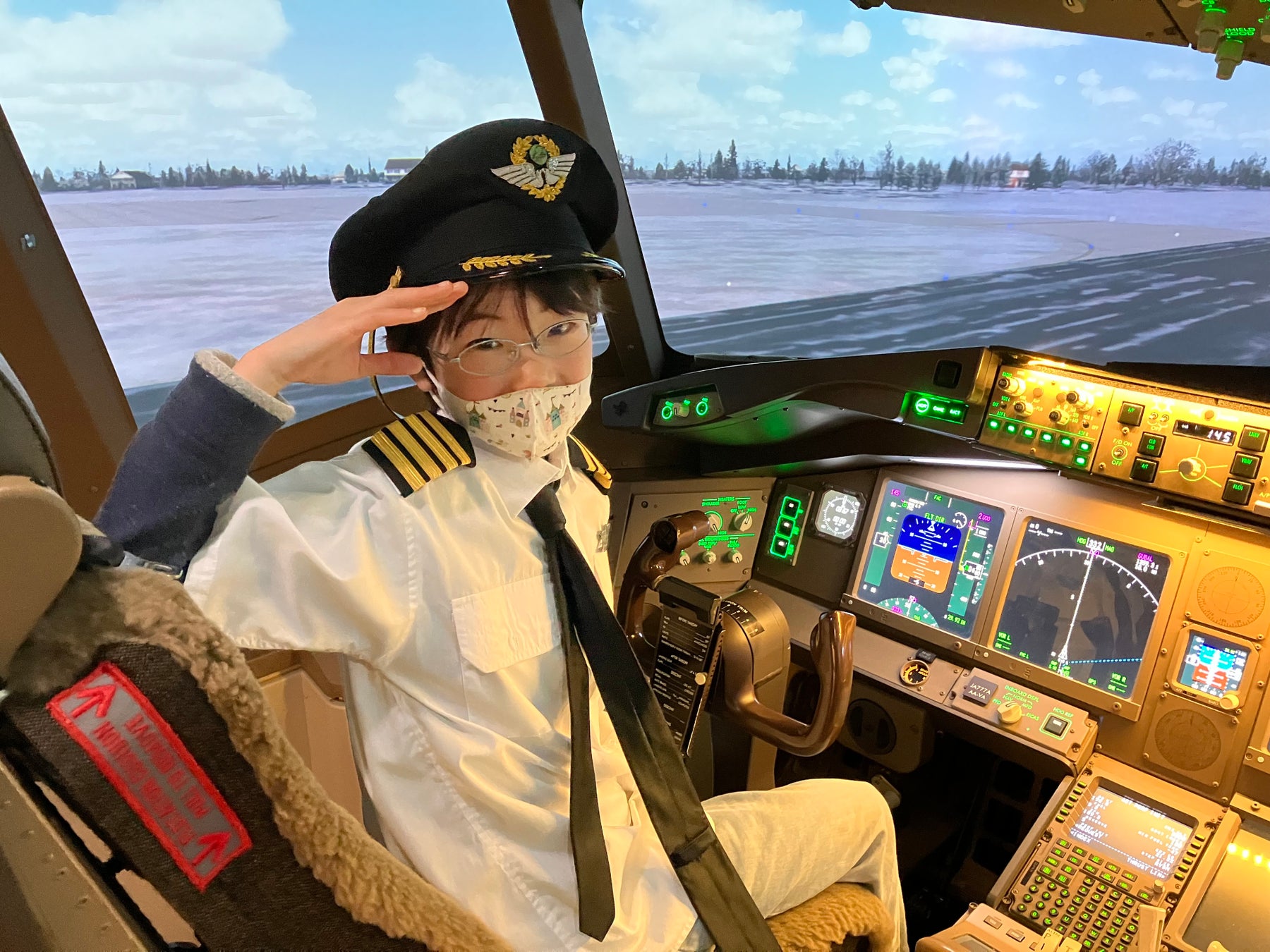 パイロットが練習で使う、高性能シミュレーターで体験を行います。約400個のスイッチがコックピットに備わっていて、本物さながらの設備で体験が出来ます。
