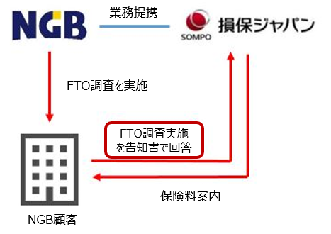 損害保険ジャパン株式会社(代表取締役社長:白川 儀一、以下「損保ジャパン」)と、知的財産サービス大手であるNGB株式会社(代表取締役社長:宮﨑 潔、以下「NGB」)は、NGBが提供する企業の知的財産における侵害リスクを調査するFTO調査※1を実施した企業に対し、「知的財産権賠償責任保険」の保険料割引を2023年1月から開始します。