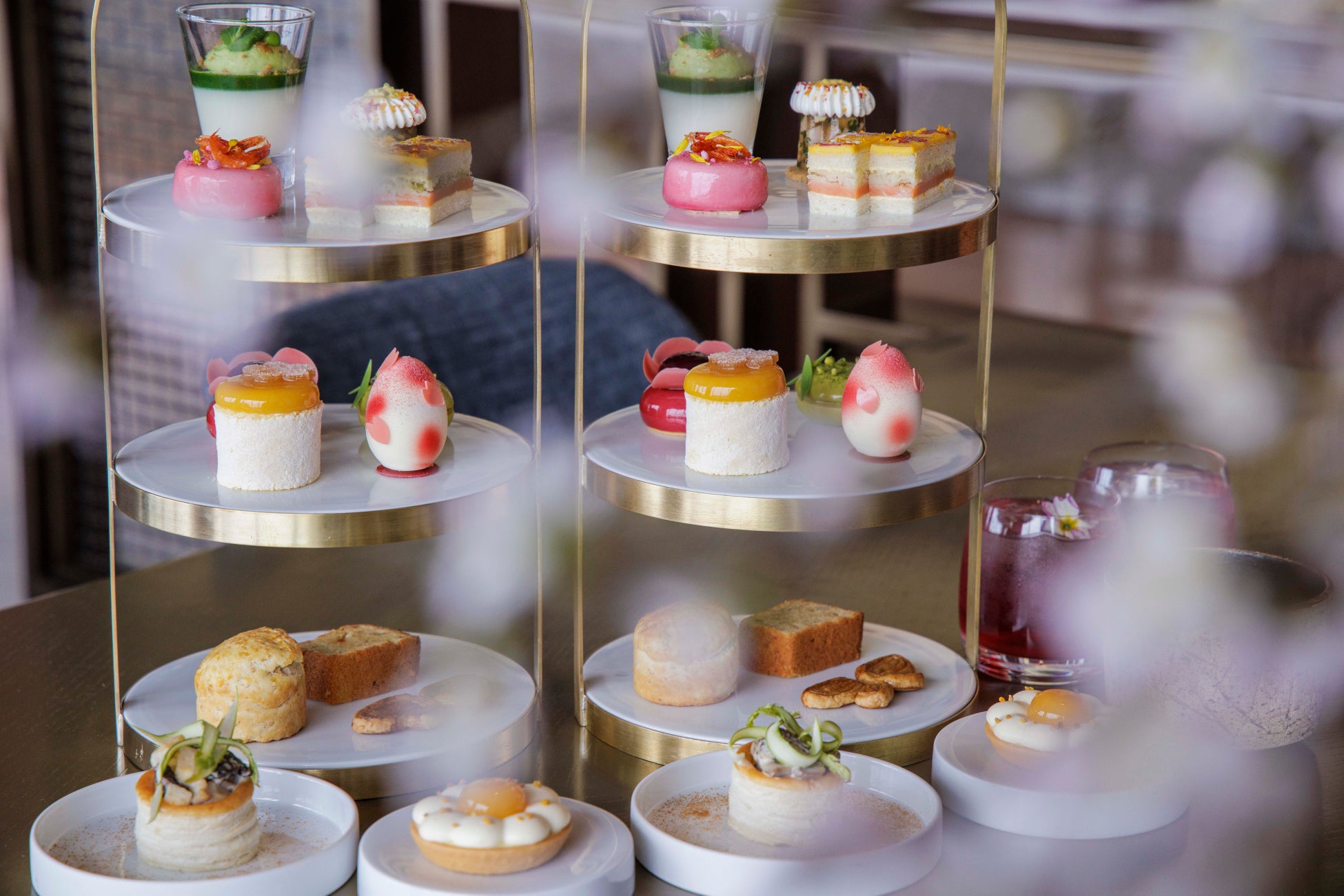 春限定のスプリングアフタヌーンティーは、爽やかで優しいお味が伝わるようなピンクやオレンジ色に彩られた可憐なスイーツの数々に、パリエッフェル塔内にあるミシュランレストラン ル ジュール ヴェルヌ(Le Jules Verne) の錚々たるシェフのもとで腕を磨いたフォーシーズンズホテル東京大手町のエグゼクティブスーシェフ久世 健介によるフレンチと日本が織りなすセイボリーをご賞味いただけます。