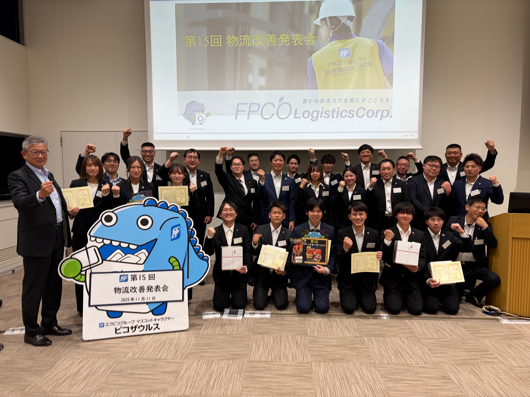 エフピコ物流株式会社(代表取締役社長:小泉 哲)は、2025年11月11日(火)に「第15回物流改善発表会」を開催いたしました。本発表会は、全国の物流拠点で若手スタッフを中心に実践されている改善活動の成果を発表する社内イベントの1つです。7月からの書類審査・予選会を勝ち抜いた15チームが発表会に参加しました。