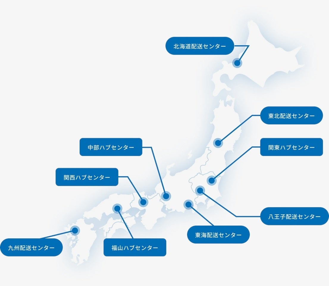 <物流の効率化>配送拠点から半径100km圏内で日本の全人口の85%をカバー
