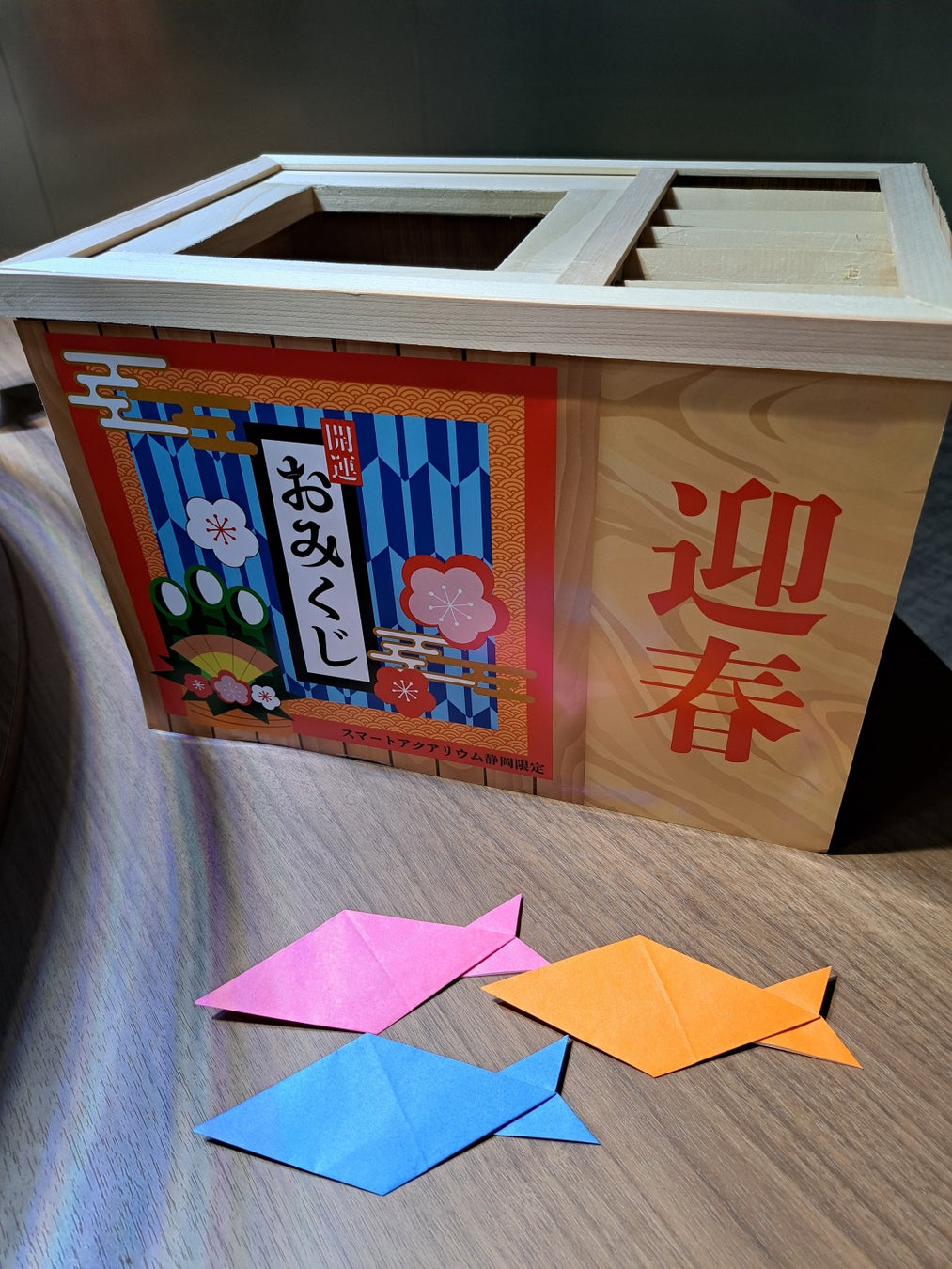 加えて、干支展をより楽しんでいただくため、水族館スタッフが折り紙で作製した当館限定の「魚おみくじ」も販売します。