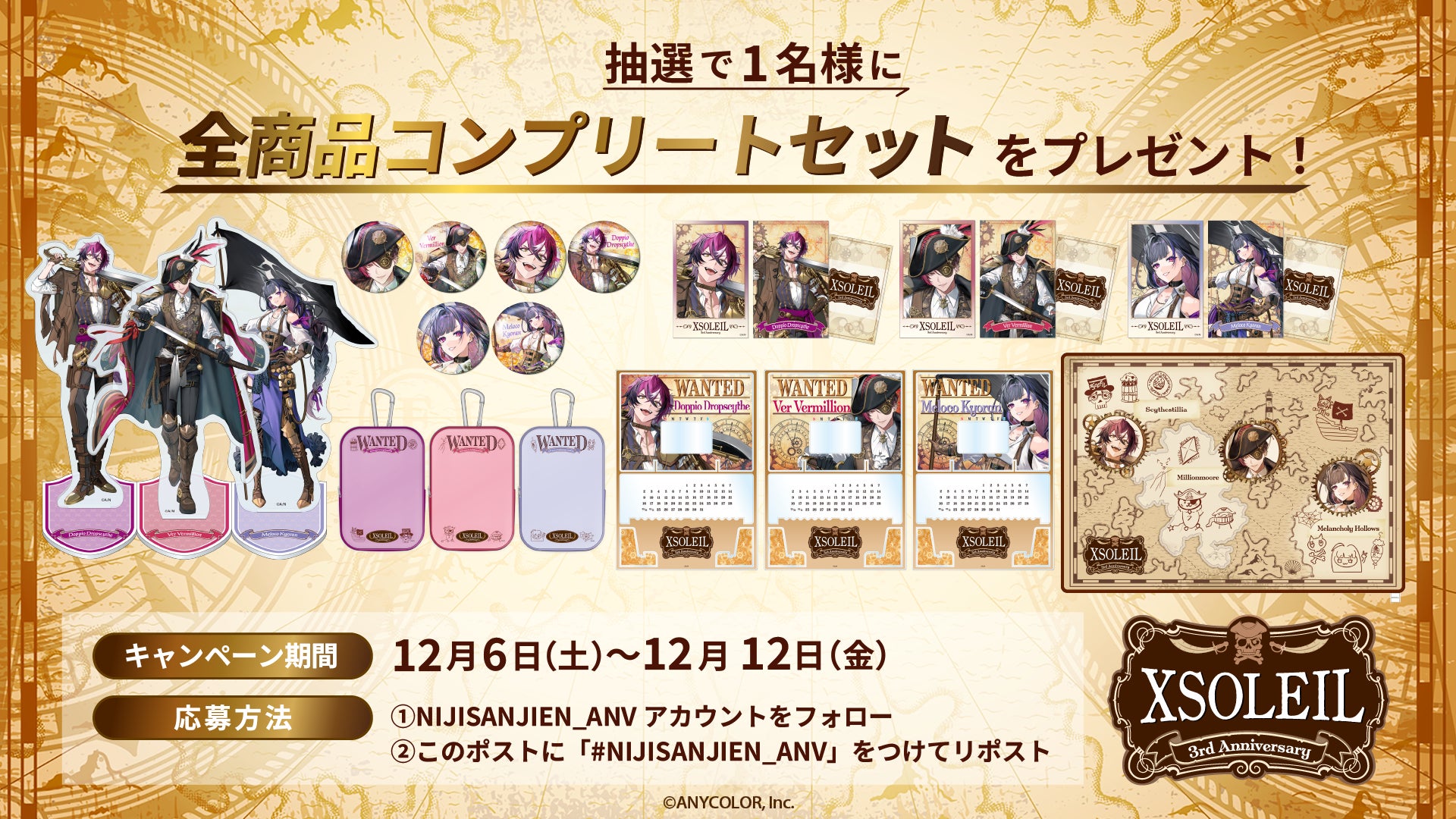 「NIJISANJI EN」に所属する「XSOLEIL(エクソレイ)」の3周年を記念したオリジナルグッズが全世界で発売決定!12月6日より予約受付開始