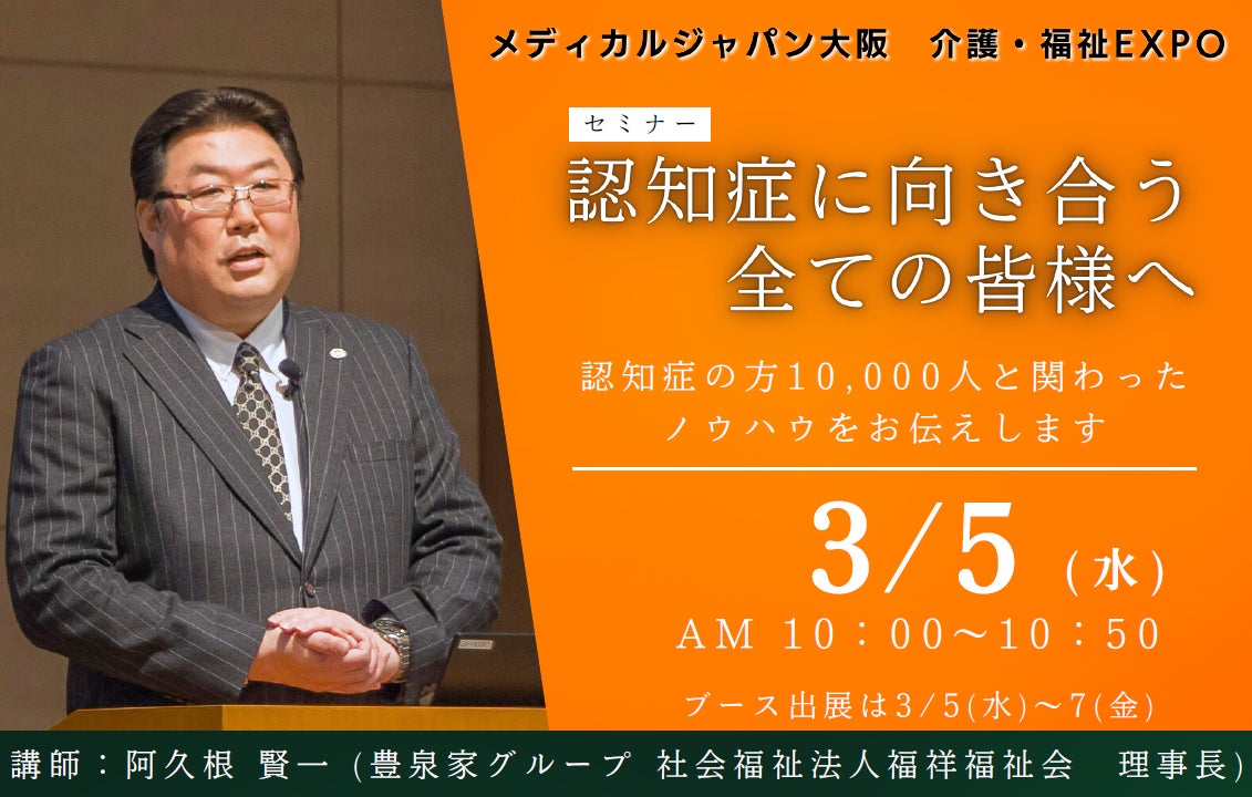 【3/5(水) 10:00 ~】認知症に関わるすべての皆様へ "認知症ケア" セミナーを介護・福祉EXPOにて講演決定! 会場:インテックス大阪
