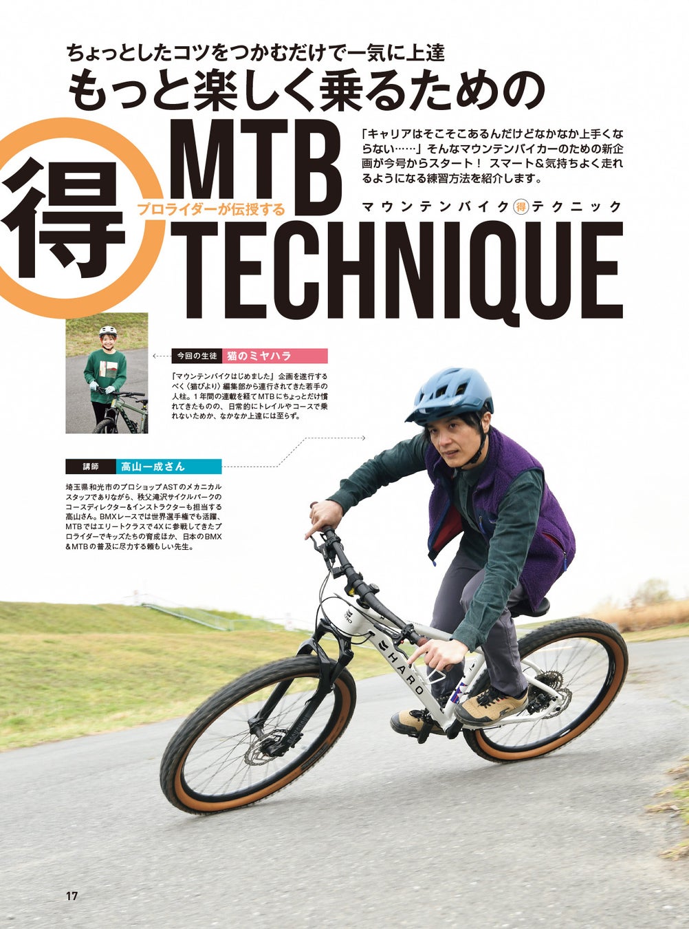 「自転車で山を走ること」へのハードルを下げ、「自然と親しむ」「気軽に楽しむ」ことからアプローチ。MTB初心者はもちろん既存のMTB ファンにとっても役立つ情報を網羅します。山でのルールやマナーもしっかり吸収できる、〝マイペースに遊ぶ〟ためのMTB 情報誌です。