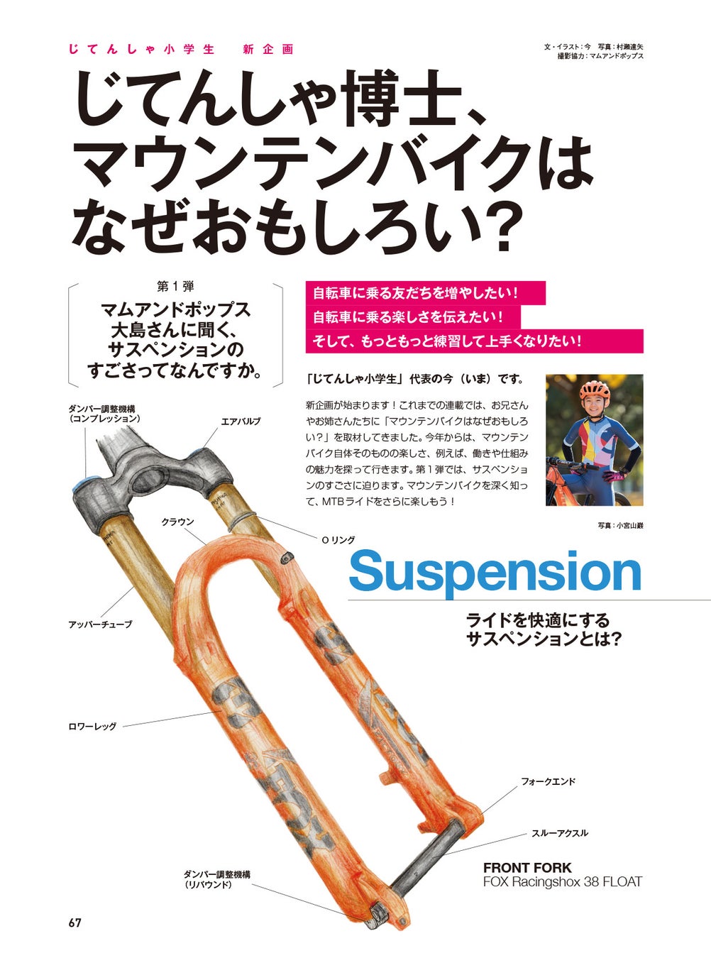 MTBの機材について、小学生がその分野の専門家を徹底取材。第1回のテーマは「サスペンションのすごさって?」。知っているつもりでも意外とためになる、大人にも役立つ内容です。