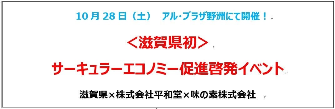 サーキュラーエコノミーとは、資源やエネルギーを無駄にしない循環型の社会・経済システムを指し、様々な企業がサーキュラ―エコノミーに対応した取り組みを始めています。滋賀県は、企業とともにサーキュラーエコノミーを消費者に広める「サーキュラーエコノミー促進啓発イベント」を開始しました。平和堂は、日常的に多くのお客様が来店される店舗のスペースを提供することで、サーキュラーエコノミーの啓発活動に協力します。第1回目となる今回のイベントでは、味の素株式会社の「捨てたもんじゃない!™」を合言葉にしたフードロス削減プロジェクトや、プラスチック削減の取り組みを中心に、ワークショップなどを通じてサーキュラーエコノミーについて紹介します。