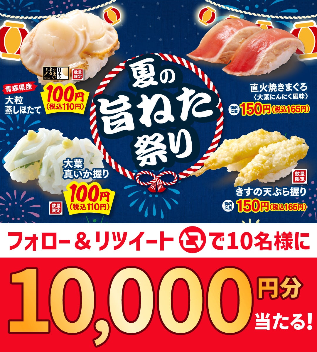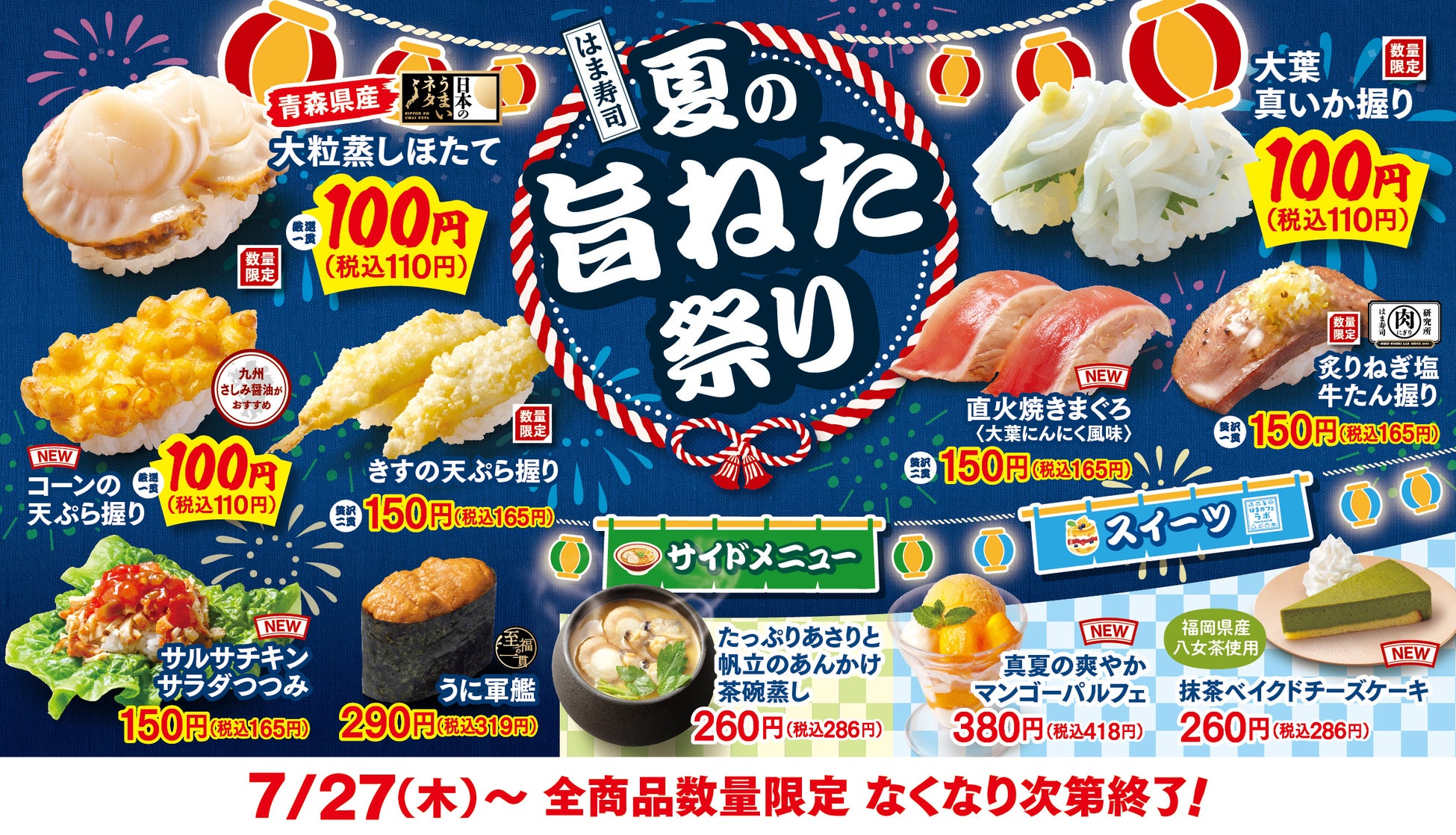 【はま寿司】はま寿司に夏の旨ねた大集合!大粒蒸しほたてや真いかが110円!「はま寿司の夏の旨ねた祭り」開催!