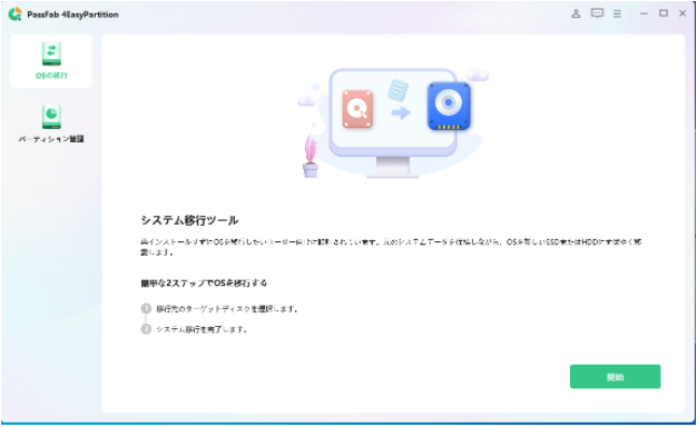 Step1:Windows PCにUSBまたはHDD、SDDを接続し、PassFab 4EasyPartitionを起動したら、「開始」ボタンをクリックします。