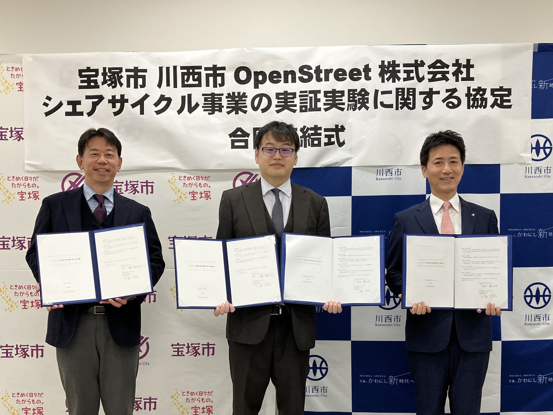 OpenStreet株式会社(本社:東京都港区、代表取締役社長CEO:工藤 智彰、以下「OpenStreet」)は、兵庫県宝塚市(市長:森 臨太郎)と、兵庫県川西市(市長:越田 謙治郎)と、『シェアサイクル事業の実証実験に関する協定(以下、「本協定」)』を締結し、国内最大級のシェアサイクルサービス「HELLO CYCLING」を活用した実証実験を2026年4月から開始したことをお知らせします。