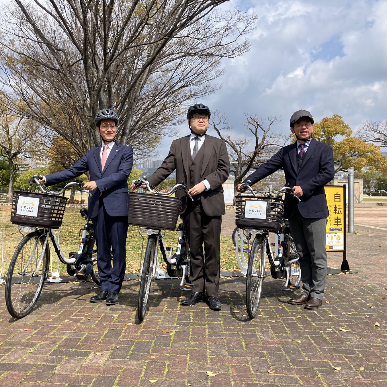 3月30日(月)、宝塚市役所でOpenStreet、宝塚市、川西市による本協定の合同協定締結式を実施しました。合同協定締結式では、宝塚市の森市長から「幅広い世代の方が利用できるシェアサイクルを、公共交通を補完・代替としての機能だけでなく、地域活性化、観光振興に資する取り組みとして、その有効性や課題をOpenStreetと連携して、研究していきたいです」とコメントをいただきました。合同協定締結式終了後には、近隣ステーションへ移動し、HELLO CYCLINGについての説明や記念撮影を実施しました。