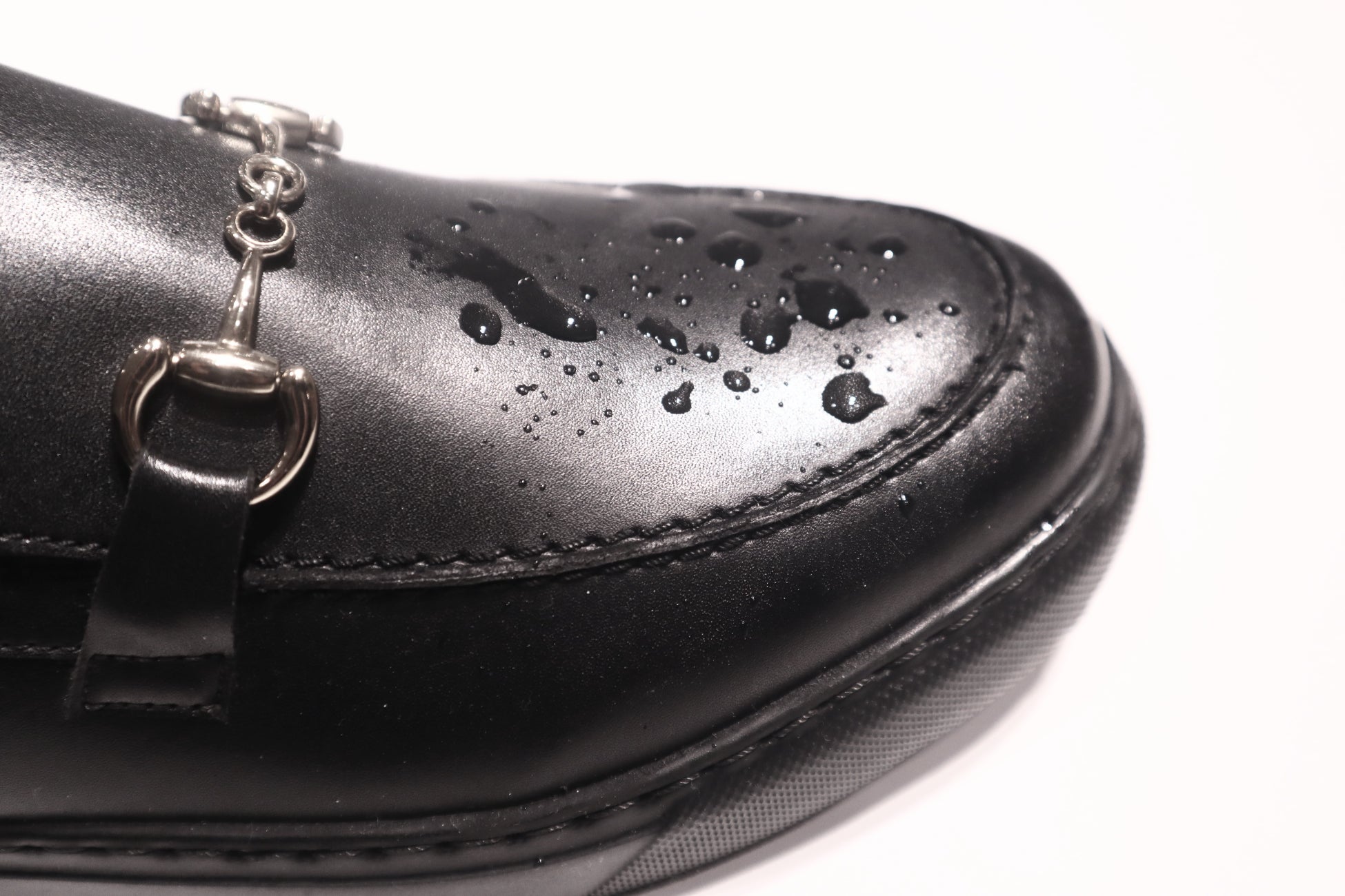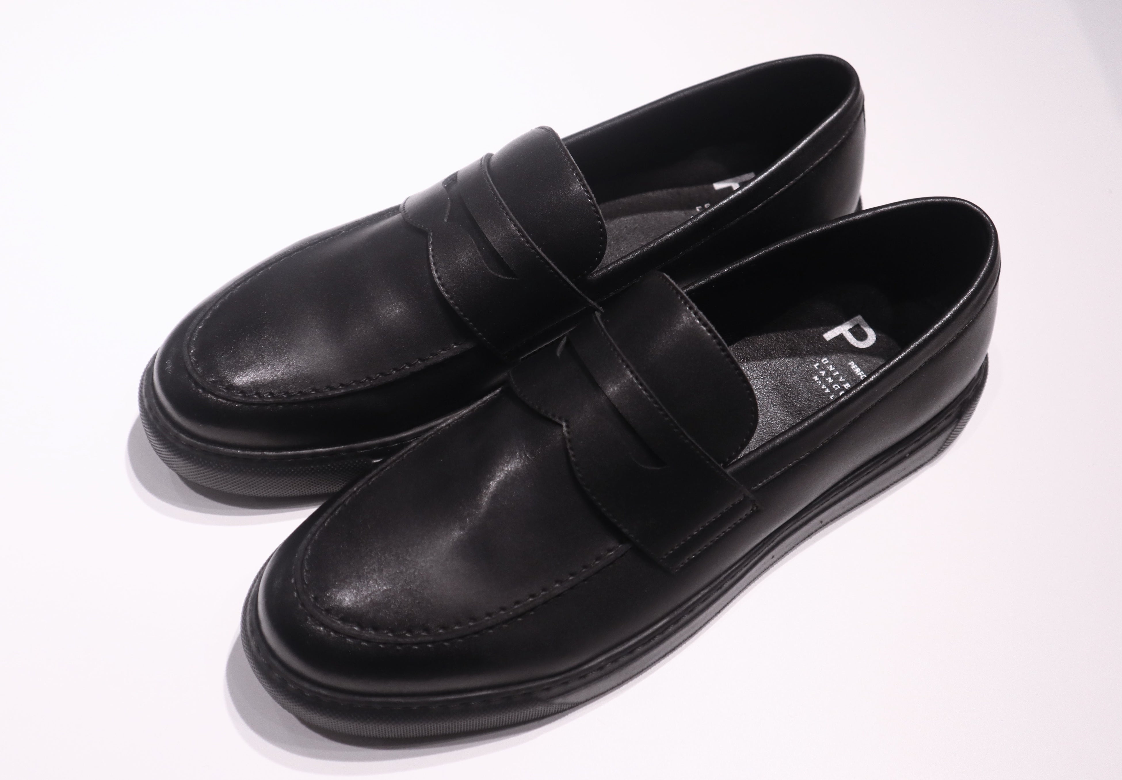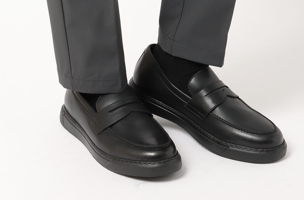 今回のシューズは、インソール・アウトソール共にランニングシューズと同様の仕様であるため、屈曲性があり非常に軽いといった特徴があります。特にインソールは、足への負担を軽減しやすいスポンジを採用していることから、長時間の歩行でも疲れにくくなっています。さらに足を覆う表面部分には、本革のような風合いを持った床(とこ)革(がわ)を使うことで、劣化しにくく柔らかさを持たせました。本企画のデザインは、プレーントゥ・コインローファー・ビットローファーの3種類を用意しており、さまざまなビジネスシーンで使いやすく、汎用性にもコスパにも優れたビジネスシューズとなっています。