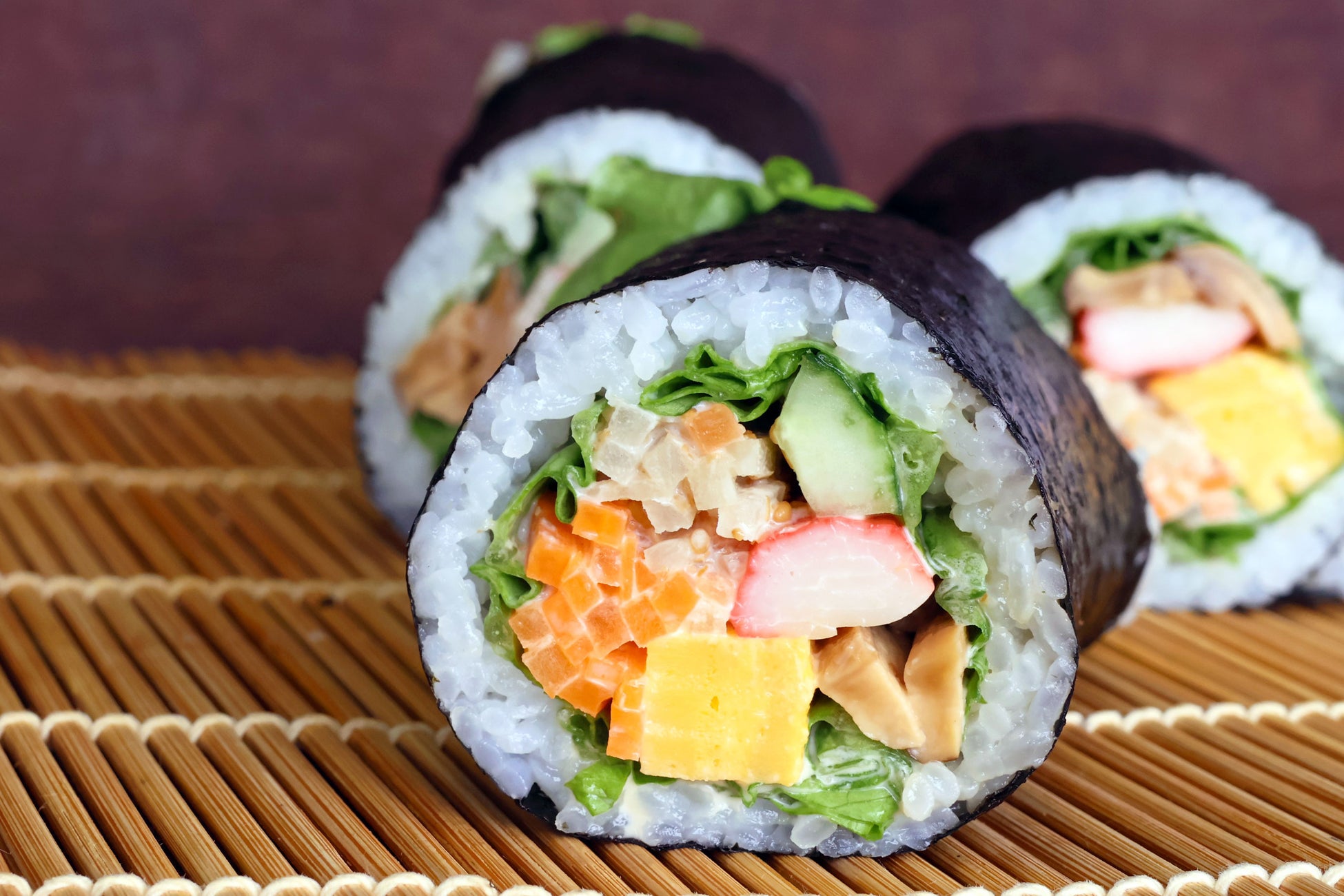 恵方巻とは、節分にその年の縁起の良い方角(今年は南南東)を向いて1本食べきると幸福が訪れるとされる縁起物です。七福神にちなんで、7種類の具材を巻き込むのが定番とされています。本レッスンでは、グリーンリーフ・にんじん・ごぼう・たまご・かに風味かまぼこ・きゅうり・しいたけの7種の具材を、海苔と酢飯の上に乗せて巻き込みます。「巻き方が分からない」、「巻いても具材がぽろぽろと落ちてしまう…」など皆様のお悩みに寄り添い、巻きすの使い方から美味しい酢飯の作り方、具材の並べ方や切り方までポイントを多数お伝えします。