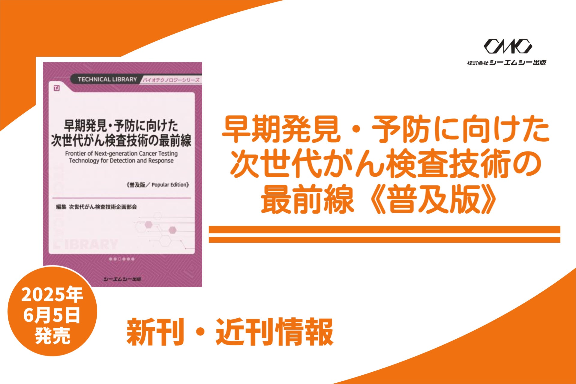 株式会社シーエムシー出版は『早期発見・予防に向けた次世代がん検査技術の最前線《普及版》』(編集:次世代がん検査技術企画部会)を2025年6月5日に発行いたします。詳細は以下をご覧ください。