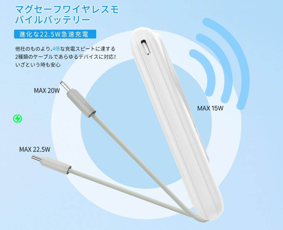 Husbzortの「MagSafe対応マグネットモバイルバッテリー」は、使いやすさと高い安全性を兼ね備えた充電ツールです。