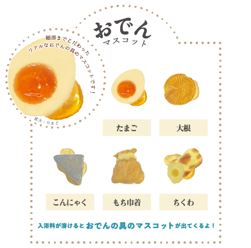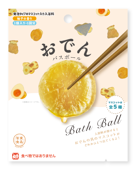 【写実食品】第三弾!自分もおでんの具になった気分に♪ リアルな具材のマスコットが出てくる「おでんバスボール」が新登場!
