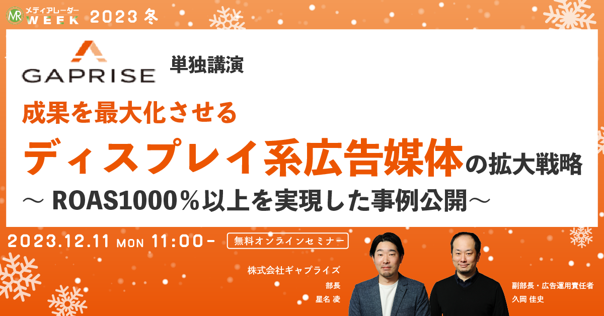 【12月11日開催】成果を最大化させるディスプレイ系広告媒体の拡大戦略 ~ROAS1000%以上を実現した事例公開~