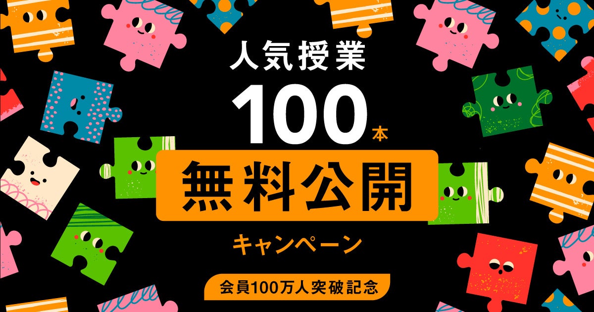 また、100万人を記念して人気授業100本を、2024年1月14日(日)までの期間限定で無料公開します。新年に向けて新たに学びを始める人、更に学びを深めたい人を応援してまいります。