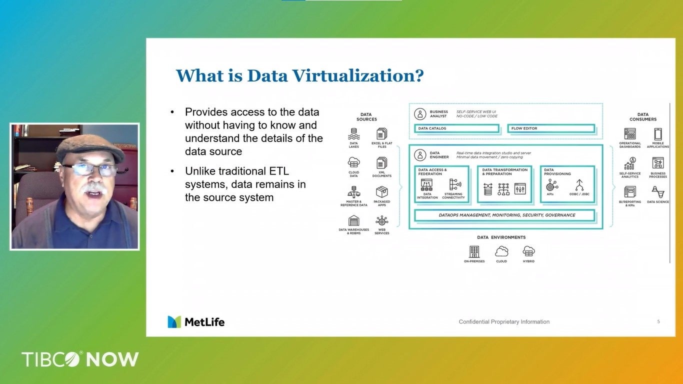 Metlifeは保険・金融サービスの世界最大手の一社であり、同社の内部および外部報告に伴うレポーティングの要件は膨大です。同社が導入した「データ仮想化ソリューションTIBCO Data Virtualization」は、レポーティングチームや下流アプリケーションを利用するチームが必要とする非常に特殊なデータ配信要件を満たす柔軟性を備えています。本セッションではデータ品質を損なわずに、迅速なデータ提供を実現する方法についてご紹介します。