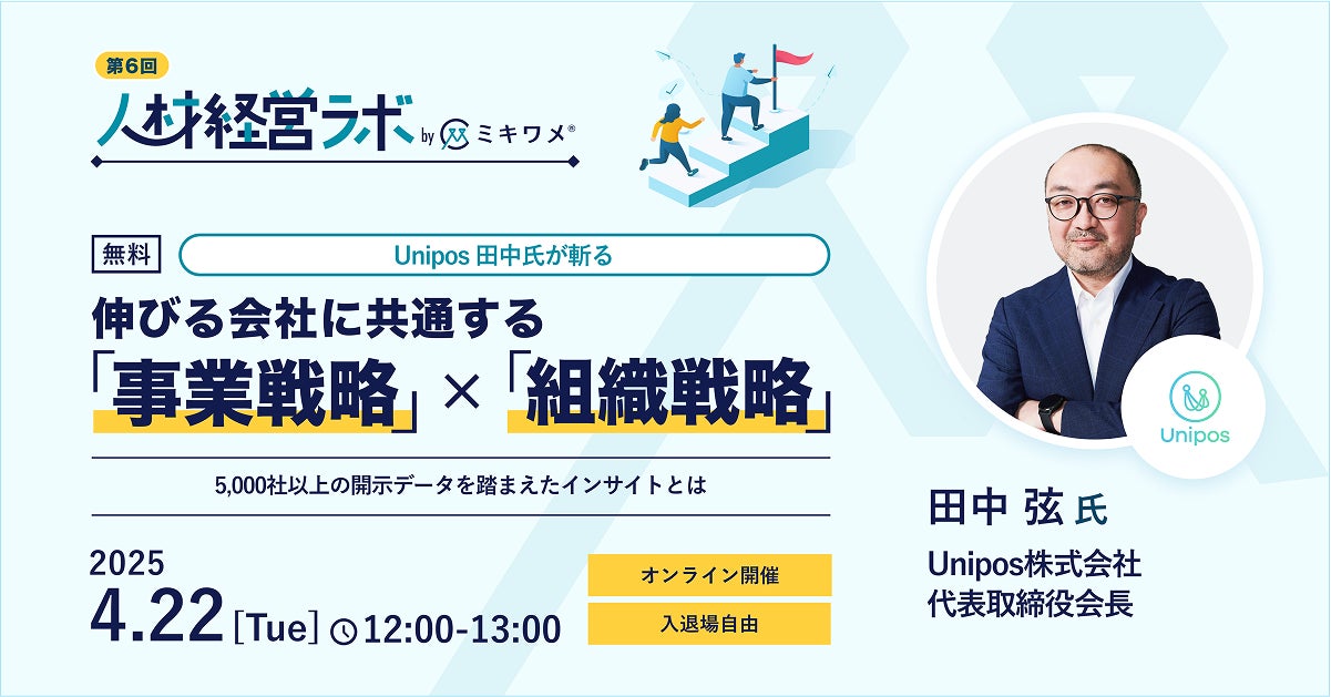 ミキワメが4/22(火)にオンラインイベント「人材経営ラボ(Unipos 田中 弦会長ご登壇)」を開催