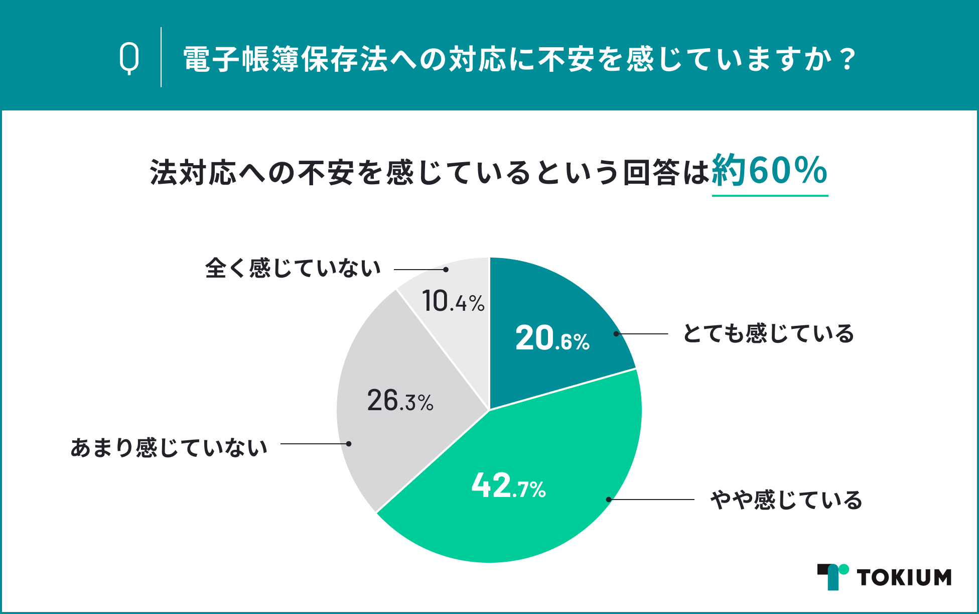 約60%近くが電子帳簿保存法への対応に不安を感じている
