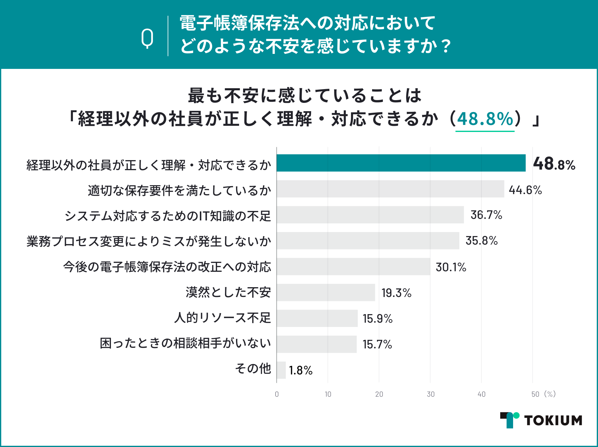 「経理以外の社員が正しく理解・対応できるか(44.8%)」に不安を感じている割合が最も高い