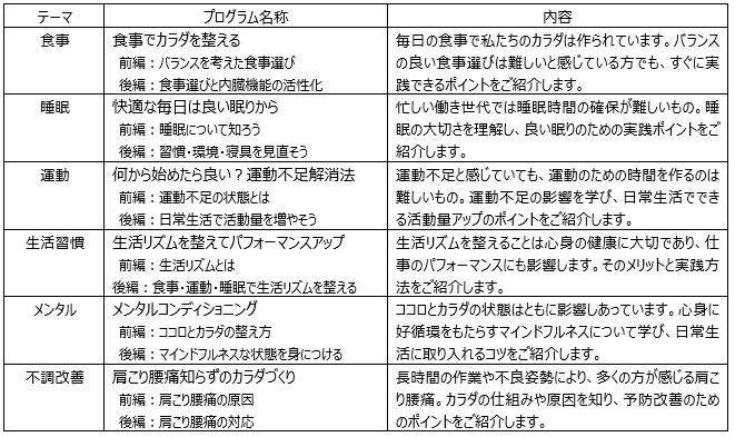 当社は本プログラムの提供を始めとして、今後も企業ニーズに応じた健康サービスを積極的に展開することで、企業理念である「健康で快適な生活文化の提案と提供」を実現してまいります。