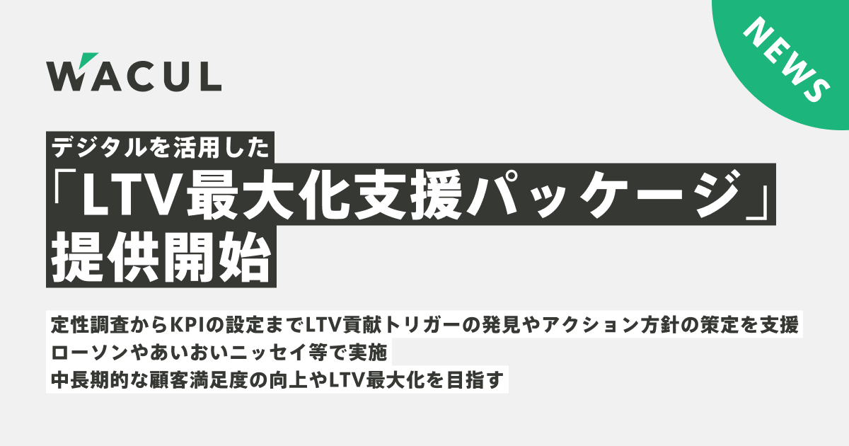 デジタルを活用した「LTV最大化支援パッケージ」の提供を開始。定性調査からKPIの設定まで、LTV貢献トリガーの発見やアクション方針の策定を支援