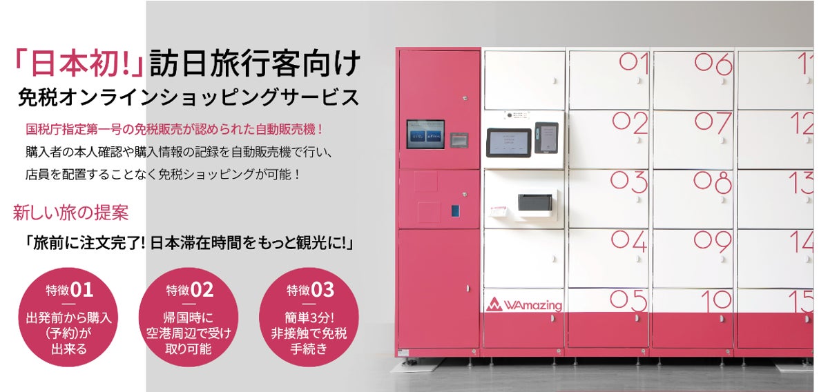 WAmazingは、「インバウンド向けOTA事業(免税オンラインショッピングサービスを含む)」「インバウンドに特化した地域観光DX事業」「訪日マーケティングパートナー事業」の3事業を展開し、インバウンド領域における確固たる実績と豊富なノウハウを有するスタートアップ企業です。中でも、免税オンラインショッピングサービスは、「日本初」の取り組みであり、WAmazingが独自開発した「免税EC自動販売機」は、全国の主要空港や周辺施設に設置され、インバウンド旅行者は旅マエ、旅ナカに免税ECサイトで商品を購入し、帰国時に商品の受け取りができます。「日本中を楽しみ尽くす、Amazingな人生に。」のビジョンのもと、インバウンドでの地方経済・日本経済の再興を目指します。