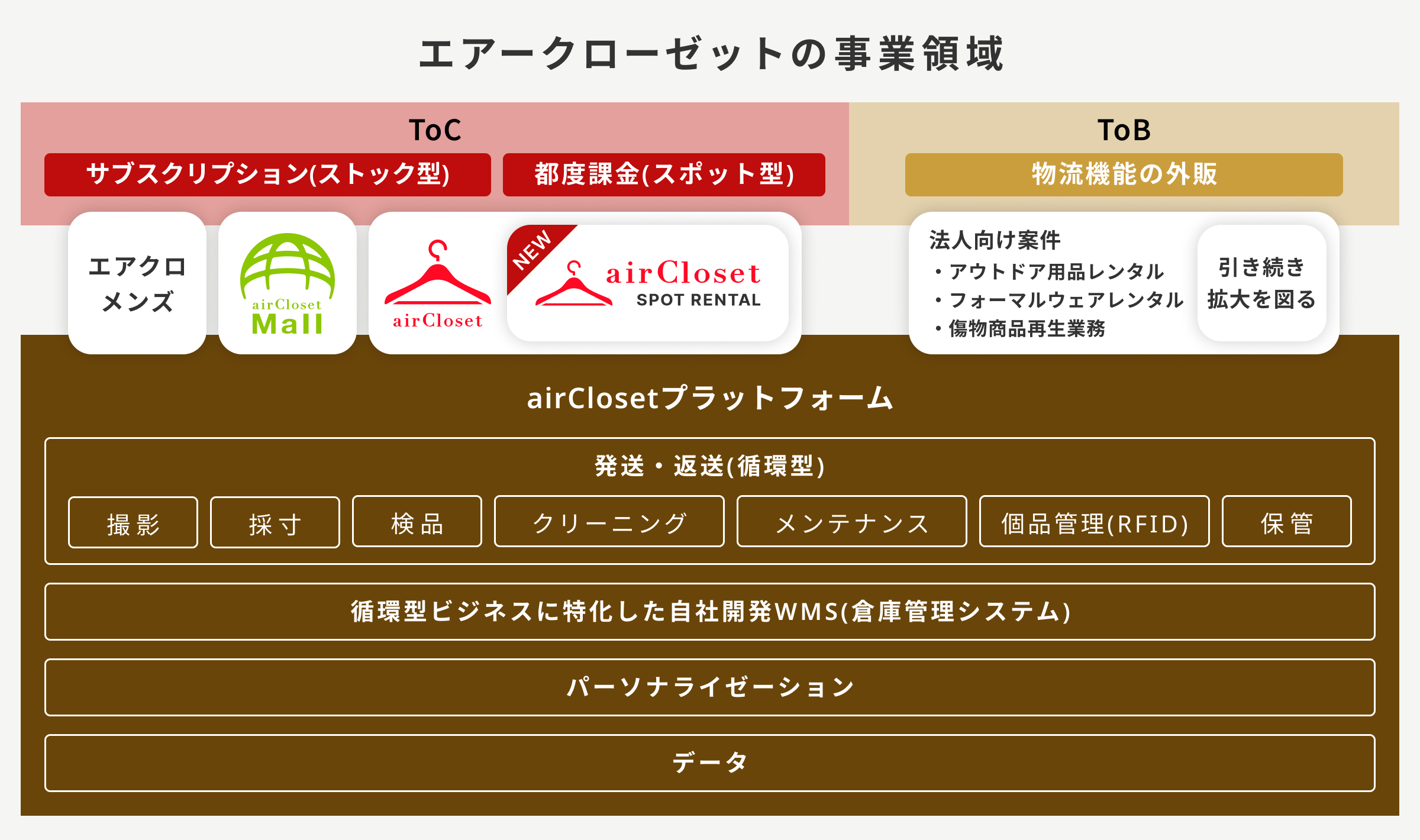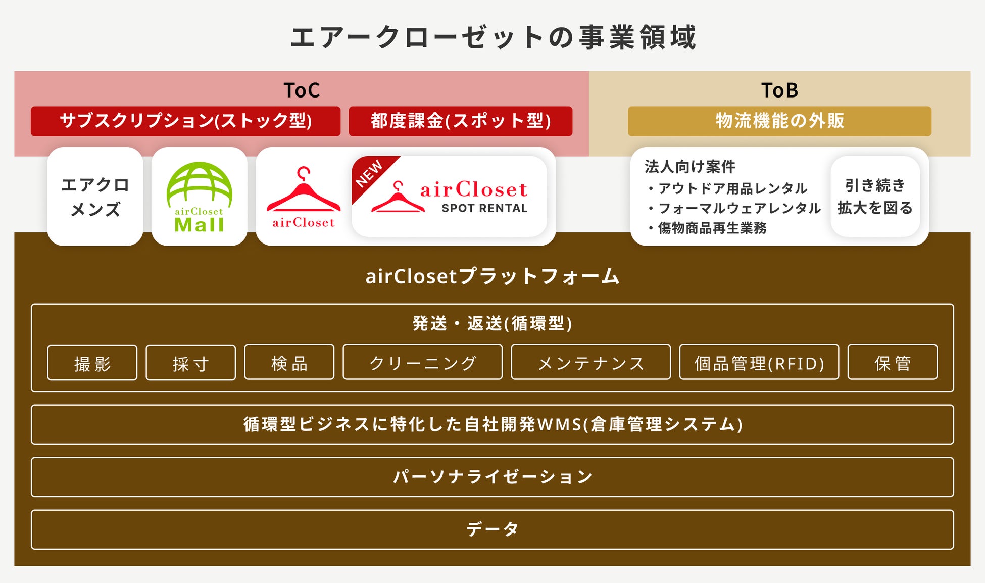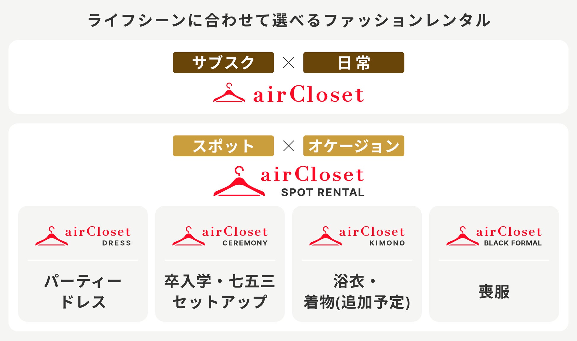 エアークローゼットはこれまで、日常着をレンタルできるサブスクサービス『airCloset』、オケージョン向けアイテムをレンタルする『airCloset Dress』を運営してきました。