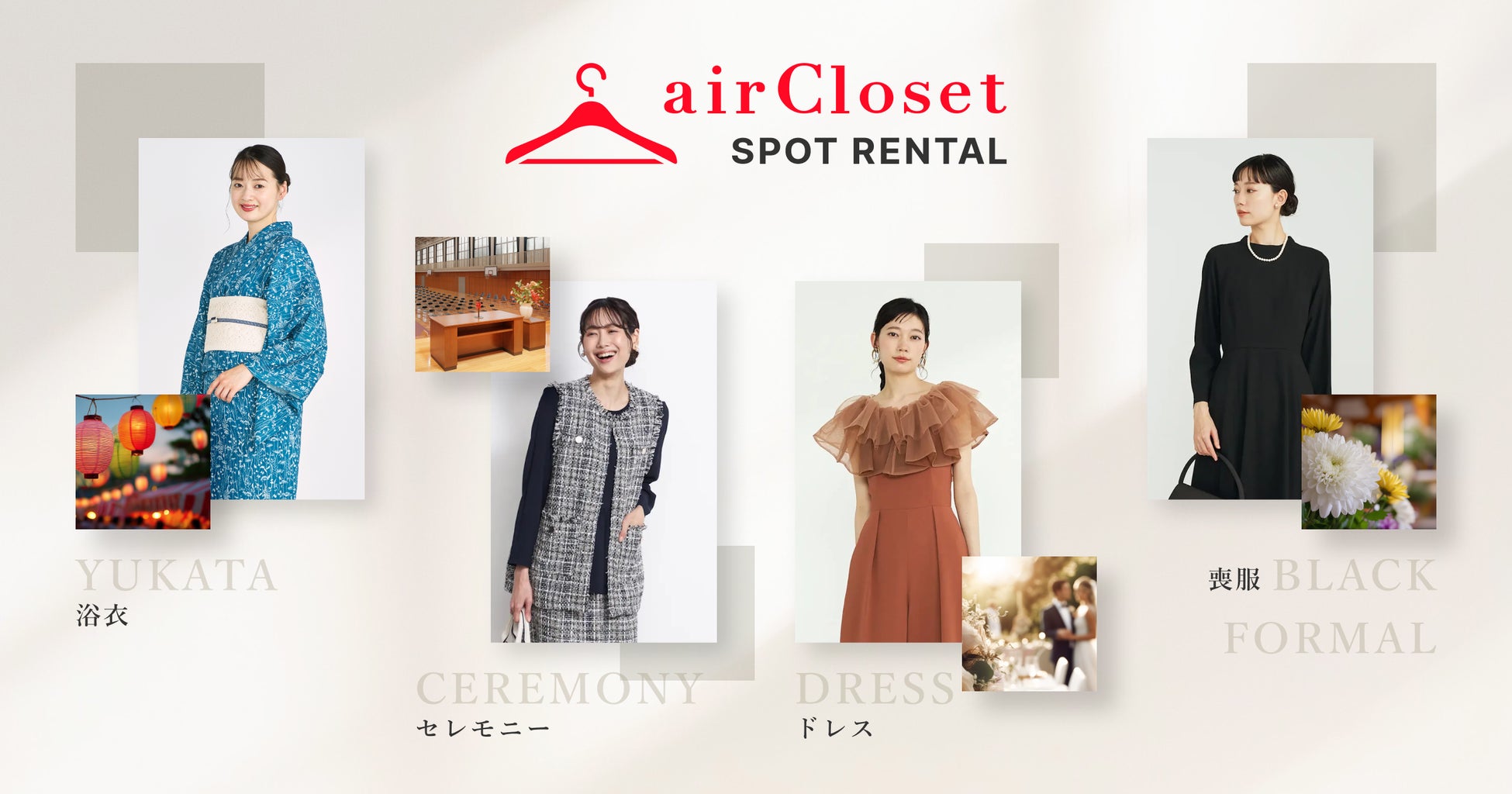 株式会社エアークローゼット(本社:東京都港区、代表取締役社長 兼 CEO:天沼 聰)は、複数の都度利用型ファッションレンタルサービスを『airCloset Spot Rental(エアクロスポットレンタル)』に統合し展開します。提供するのは、パーティードレスの『airCloset Dress(エアクロドレス)』、卒入学セットアップの『airCloset Ceremony(エアクロセレモニー)』、浴衣の『airCloset Kimono(エアクロキモノ)』、喪服の『airCloset Black Formal(エアクロブラックフォーマル)』です。冠婚葬祭や卒入学など幅広いラインナップにより、お客様は必要なシーンに合わせて無駄なくお洋服をレンタルできる、より使いやすいプラットフォームへと進化します。