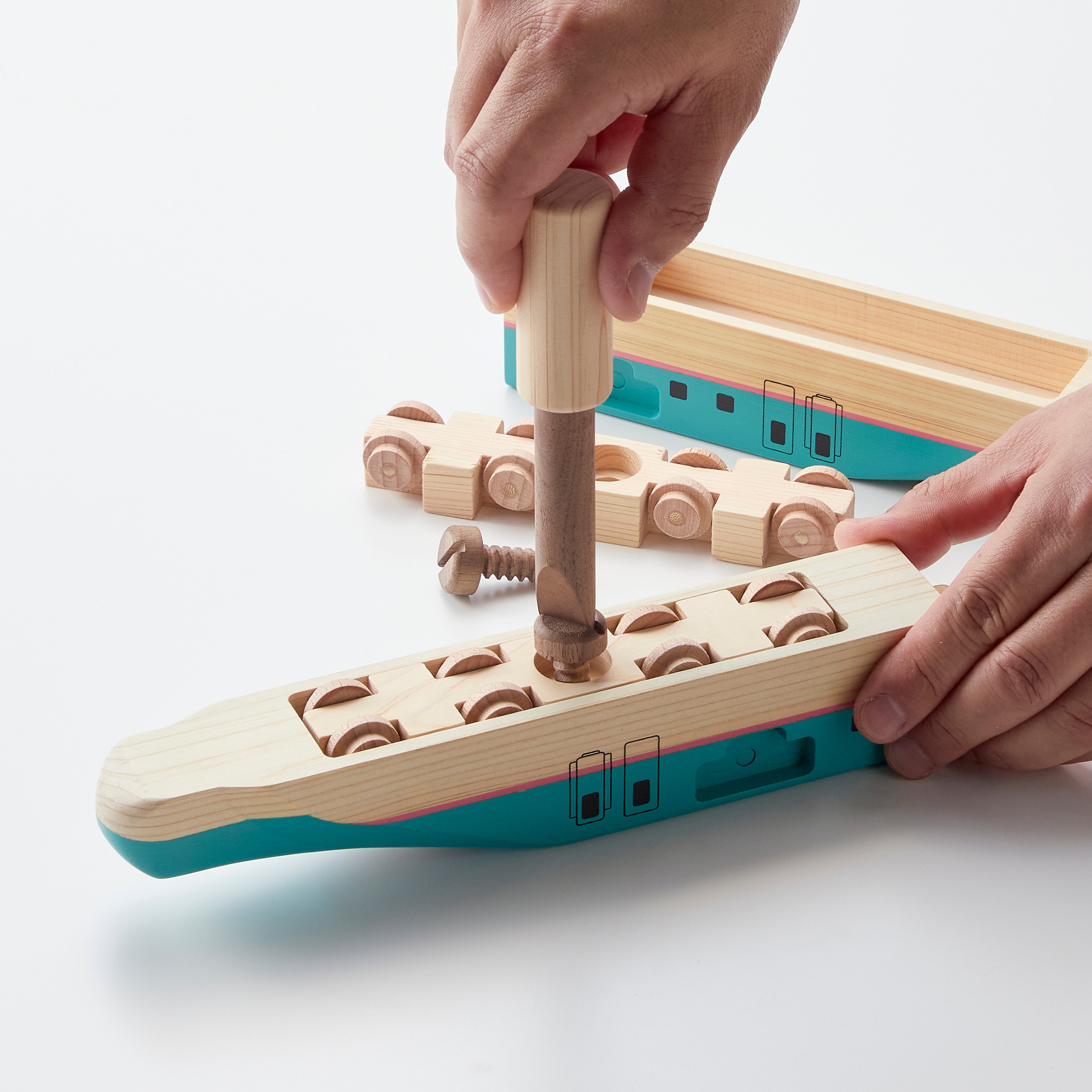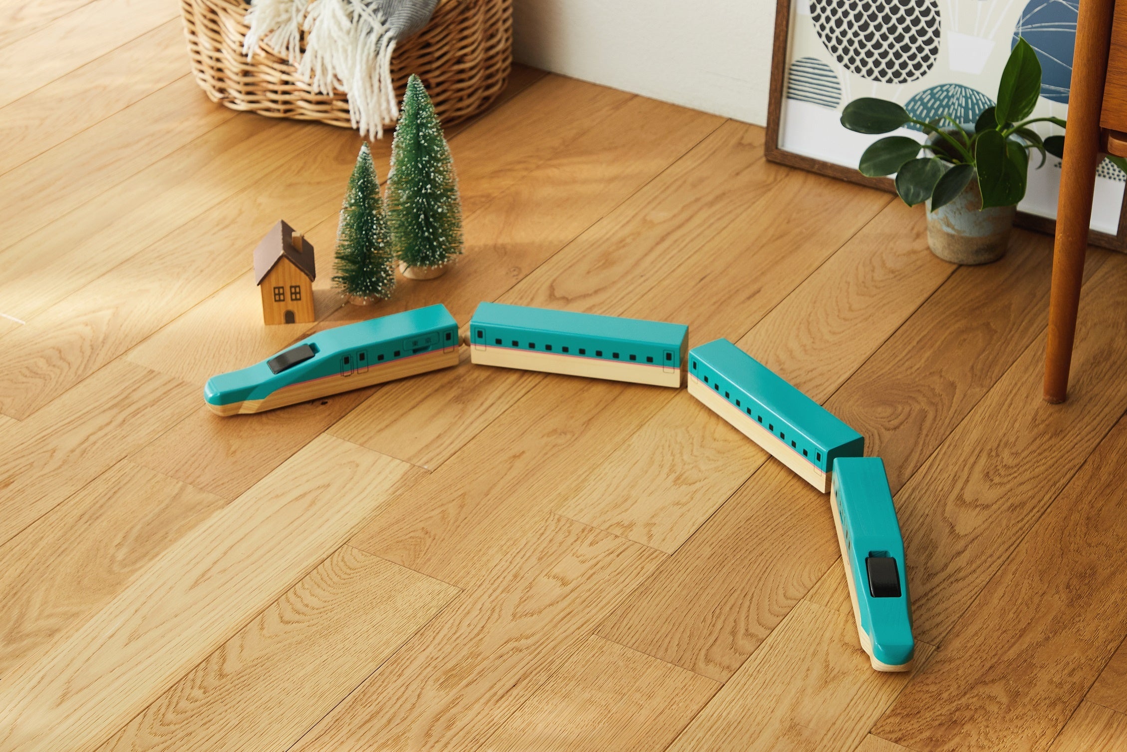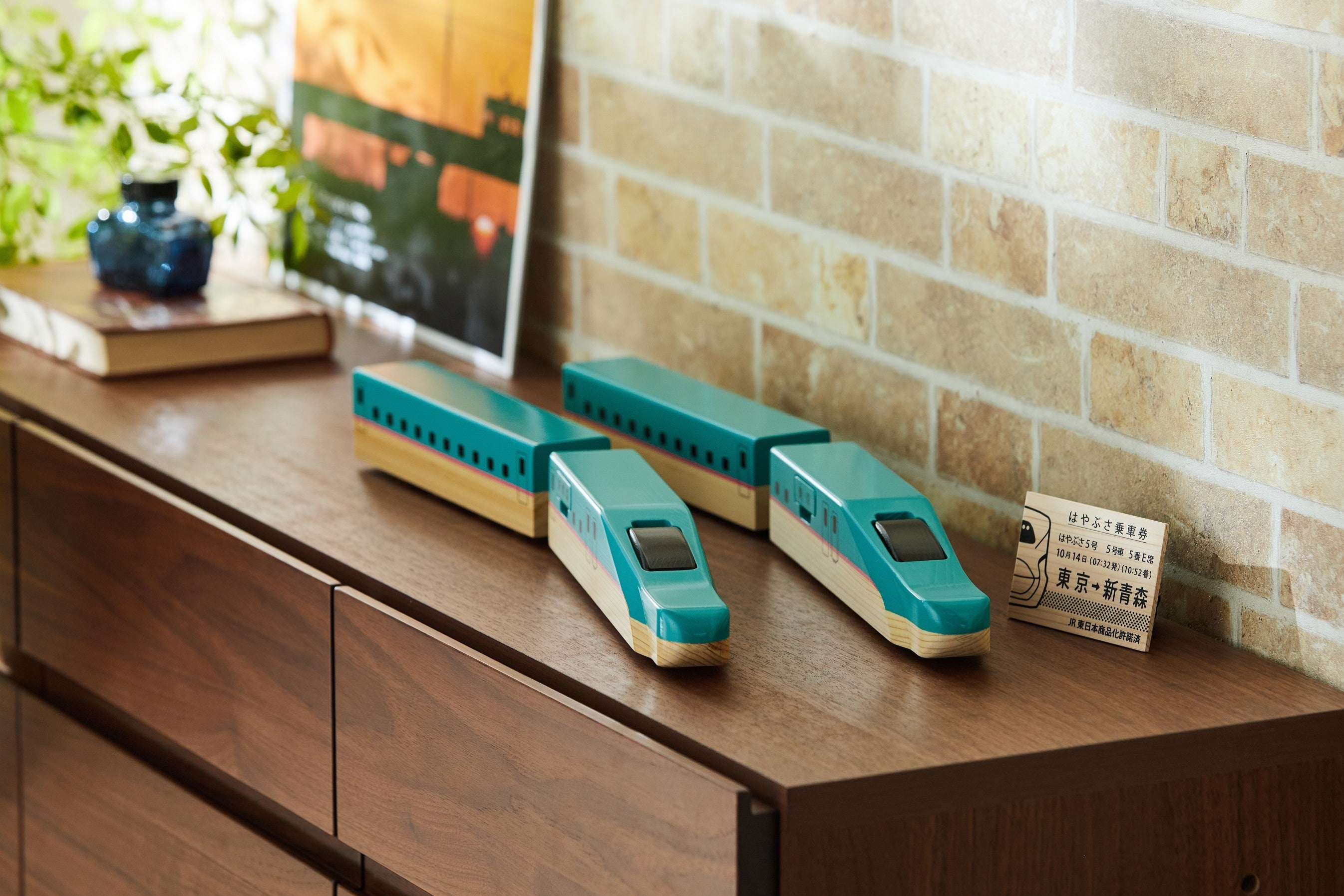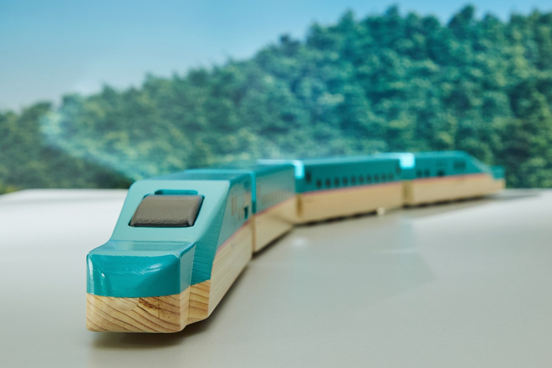 子どもたちが親しみやすいおもちゃらしさは残しつつ、E5系新幹線はやぶさの洗練されたフォルムと迫力を忠実に再現しました。車両同士の連結や、「東京」「新青森」の行き先表示の付け替えなど、想像力を育む機能も搭載。さらに、木製のきっぷやドライバーを付属し、より本格的な遊びが楽しめます(※1)。また、E5系新幹線はやぶさの特徴的な色彩を再現するために塗装にもこだわりました。素材は、厳選された木材を使用しており、開封時には爽やかな木の香りが広がる手馴染みのいい木製のおもちゃです。子どもの知育玩具としてはもちろん、本物志向の大人の鉄道ファンのコレクションとしても長く愛用いただける商品です。