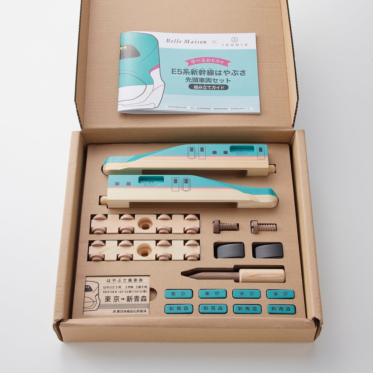 思わず胸が高鳴る! 組み立てながら学べる木製E5系新幹線はやぶさセットです。現役の新幹線乗務員や検査係が監修した、付属のイラスト付きガイドで楽しく組み立てをしながら、新幹線の秘密を発見することができます。子どもの好奇心を刺激し、大人の心も躍る本格的な木製おもちゃです。