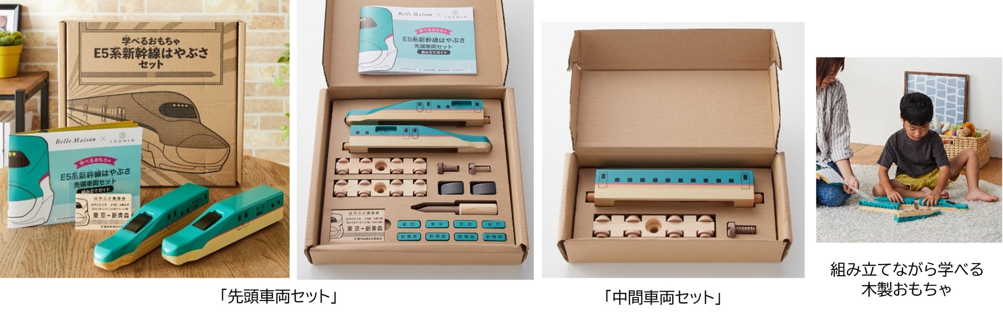 本商品は、東日本旅客鉄道株式会社(以下JR東日本)の協力のもと、安全性や環境に配慮した木製玩具ブランド「IKONIH(アイコニー)」とベルメゾンがコラボレーションした木製のおもちゃです。子どもたちが楽しみながら新幹線について学べる工夫が施されています。