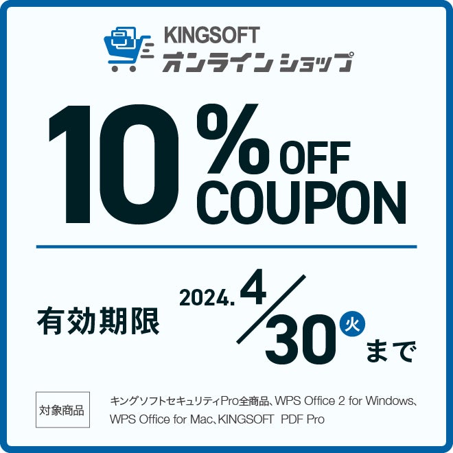 キングソフト公式オンラインショップで使える10%OFFクーポン
