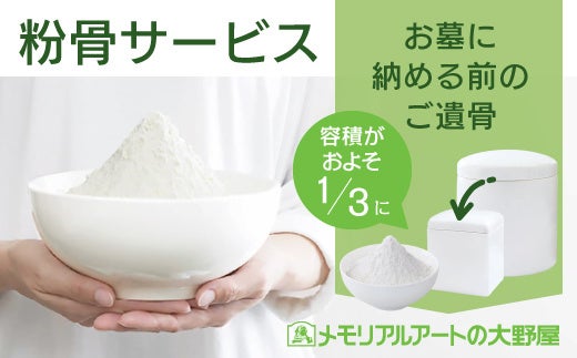 粉状にすることによってご遺骨の容積を、およそ3分の1にまで小さくすることができ、省スペースでご遺骨を安置することが可能になります。