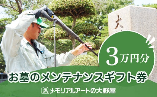 大切なお墓を、いつまでも安全で美しく清潔に保つためのメンテナンスサービスに利用できるギフト券です。プロによるお墓クリーニングや、地震に強いお墓へのリフォーム、目地切れ、花立交換、雑草の生えないお墓にしたいなど、様々なお墓のメンテナンス工事に利用できます。合計3万円までのメンテナンス工事に利用できます。(おつりは出ません)