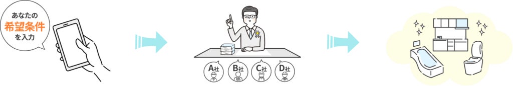 お風呂やキッチンなどの水回りリフォームを専門に、お客様が納得してリフォームするための情報提供・会社紹介をするサービスです。