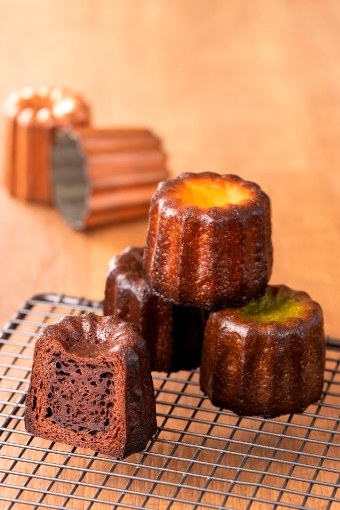 高圧蒸気をかけ焼成した、外はカリッと、中はしっとり食感にこだわったカヌレ。バニラ、チョコレート、宇治抹茶の3種の味わいを、気分に合わせてお楽しみください。