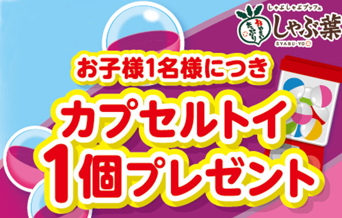 チラシ・すかいらーくアプリのクーポンコードを、店内のデジタルメニューブックでご入力いただくと、通常は、ラッキーセットご注文時のみもらえるカプセルトイが、ラッキーセットをご注文せずにお子様1名様につき1個もらえます。