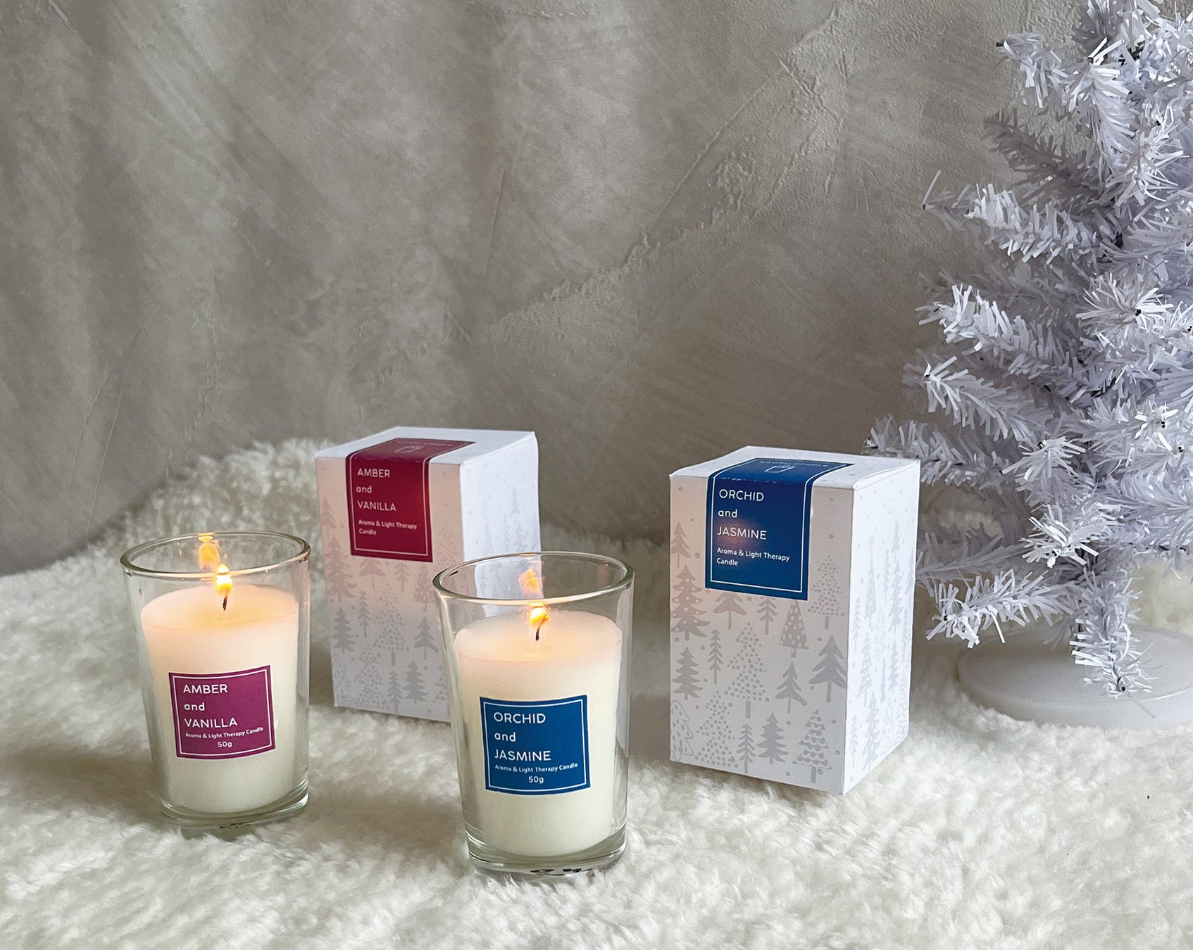「香るキャンドルウィンターコレクション」は、寒くなる季節にピッタリな甘めの香りと冬に灯してほしい上品なフローラルの香りの2種類。