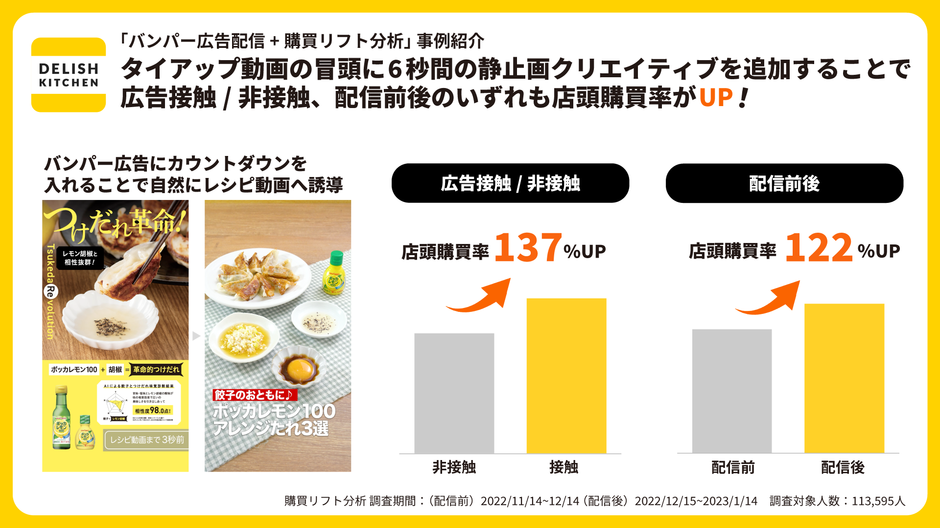 - バンパー広告配信により、店頭購買率が122%伸長!
