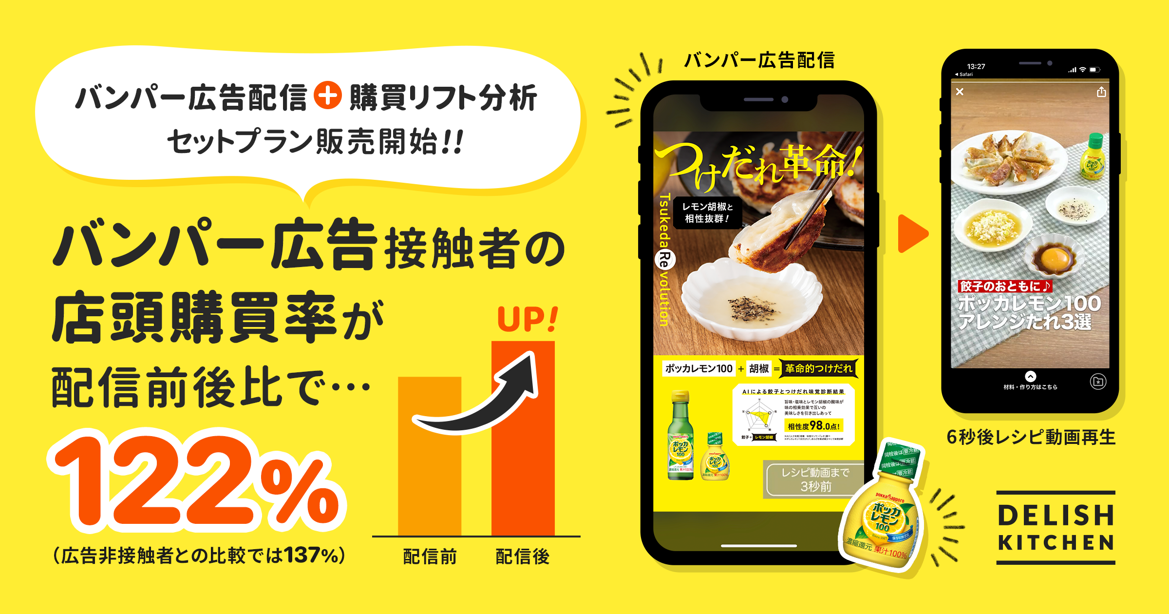 店頭購買率が122%に伸長!『DELISH KITCHEN』アプリ起動時の「バンパー広告配信」の正式販売を開始!